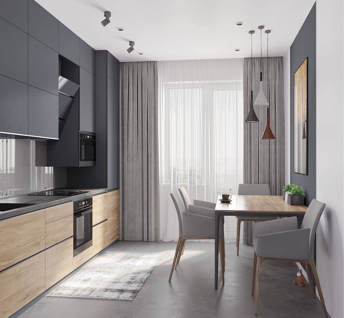 Дизайн кухни, выполненный таким способом получится респектабельным и стильным.