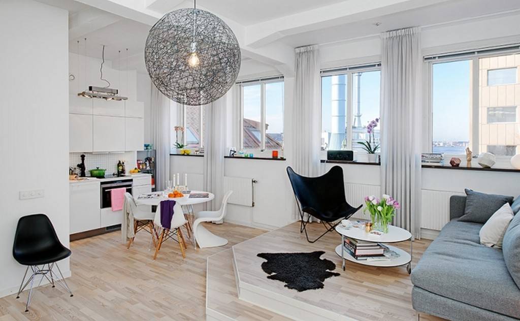 Для маленьких помещений светлые тона и монохромность – залог успешной оптимизации пространства. Но если сторона не солнечная, то стоит избегать холодных оттенков (голубой, синий, серый). Отдайте предпочтение пастельному персиковому, лиловому, бледно-желтому.