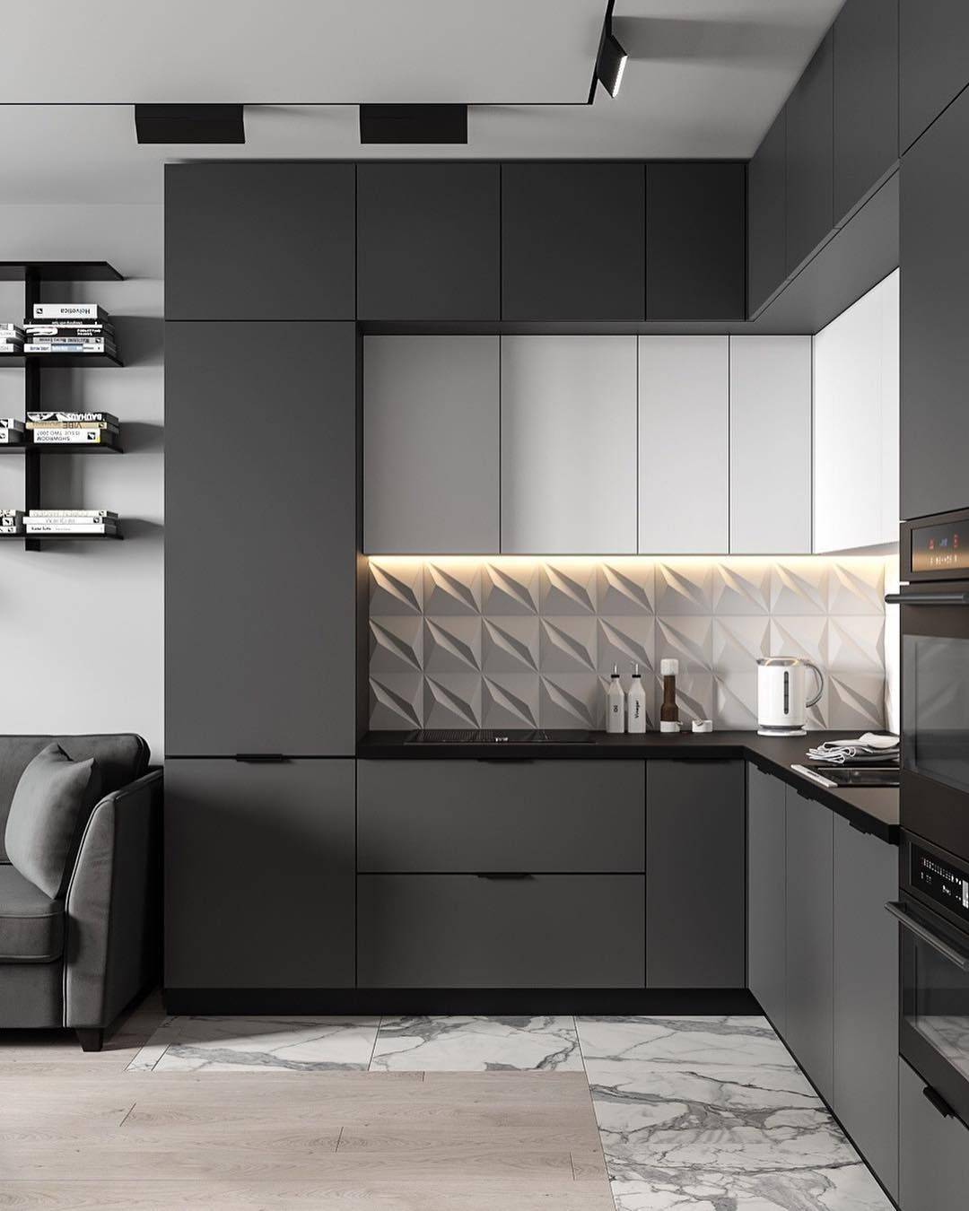 Проекты кухни на 2020 год предполагают создание мебели либо с нижними шкафами и кухонным островком, либо наоборот — с цельной стеной и кухонным островом перед ним. В последнем случае выбираются кухонные ниши. Что появится между шкафами на кухне 2020 года? В настоящее время в шкафах встроена целая стена, и в центре вырезан только квадрат или прямоугольник, в котором размещен небольшой участок столешницы с раковиной и плитой. Благодаря этому наименее элегантная часть кухни «прячется» в нише от глаз людей в гостиной или столовой.
