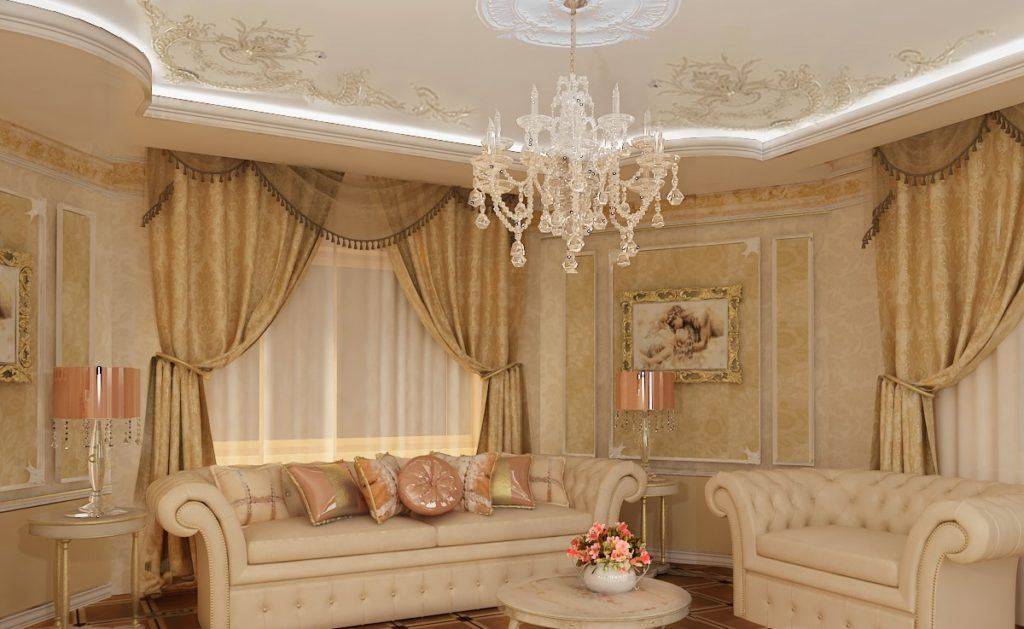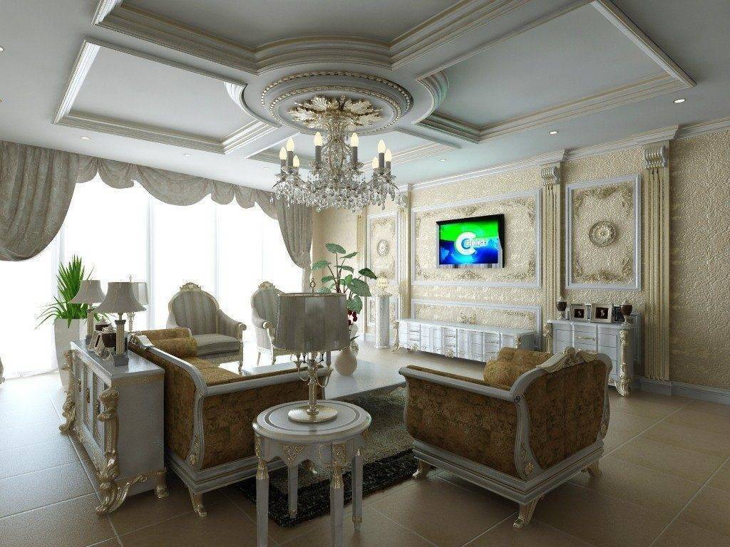 В средних и больших по площади помещениях большая и яркая люстра может стать главным украшением интерьера, хорошо выделяясь на нейтральном, светлом фоне.