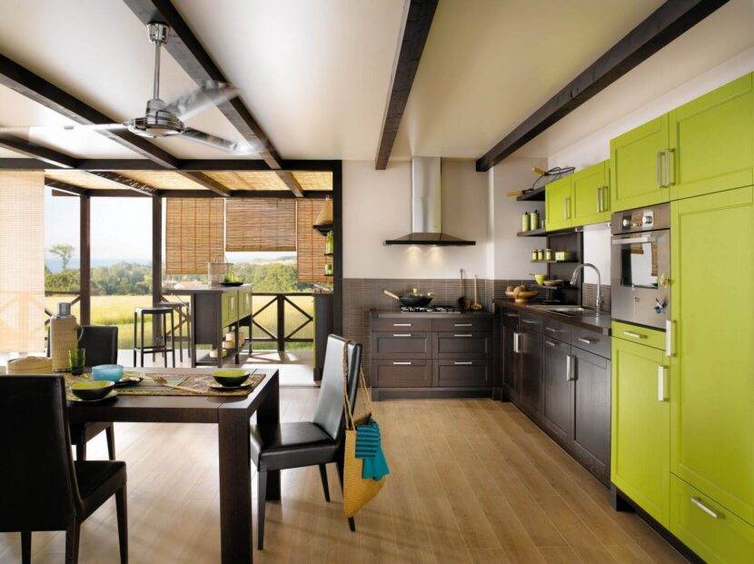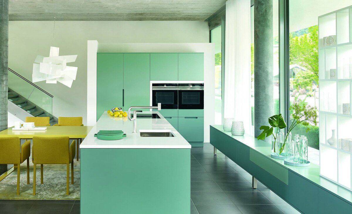 Интерьер кухни в зеленых цветах позволяет ей выглядеть благороднее и эффектнее