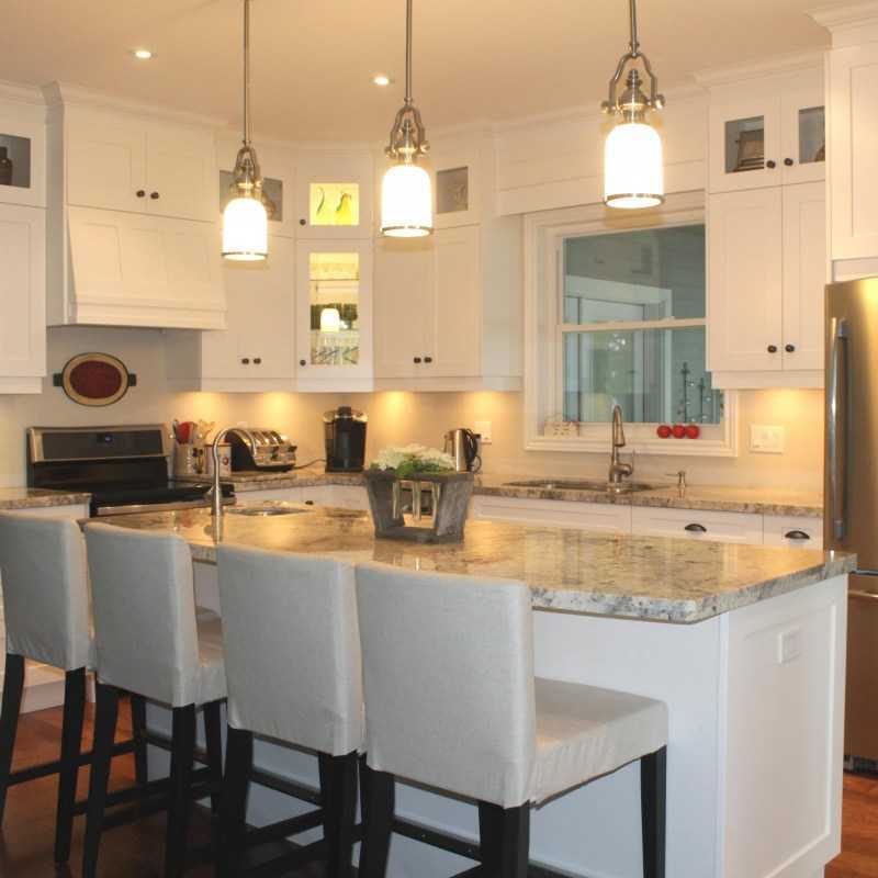Правильно размещенное освещение играет большую роль в интерьере кухни. С его помощью можно создавать визуальные интересные эффекты, делать комнату свободнее или уютнее, сглаживать недостатки планировки или геометрии. Отличный вариант – несколько светильников и подсветок над рабочей поверхностью, в зоне приема пищи.