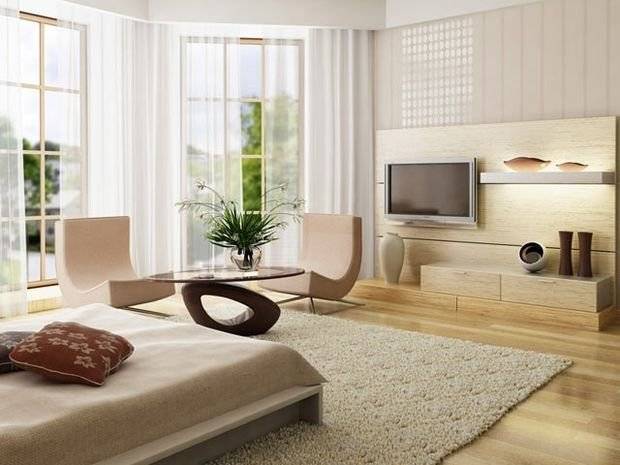 Такой тип планировки лучше всего функционально подходит при наличии большого пространства, а эстетически подходит для комнаты с большими окнами, которые синонимичны своими формой и размером общему виду помещения.
