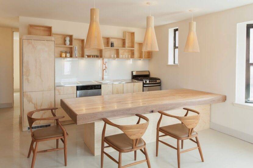 При такой организации пространство каждый из членов семьи может свободно видеть и общаться друг с другом. Такая организация пространства удобна и для принятия гостей, когда не нужно бегать каждый раз из кухни в комнату, чтобы, к примеру, поставить на стол приготовленные блюда.