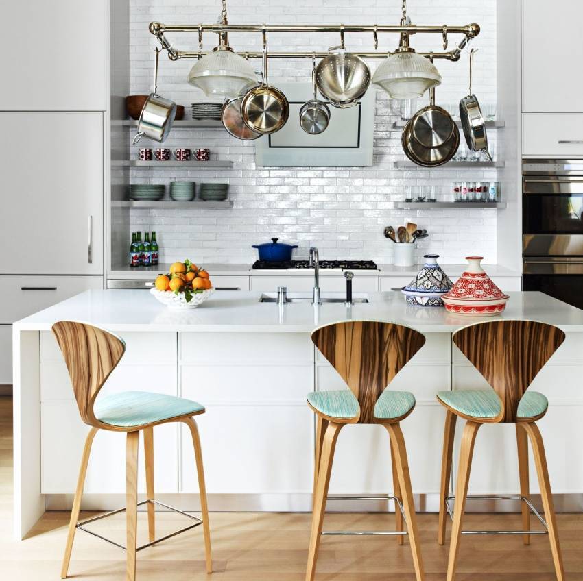 А если добавить к этому древесные поверхности, глянцевую плитку, живые растения, легкие занавески и стеклянные детали, то кухня станет самим воплощением легкости.