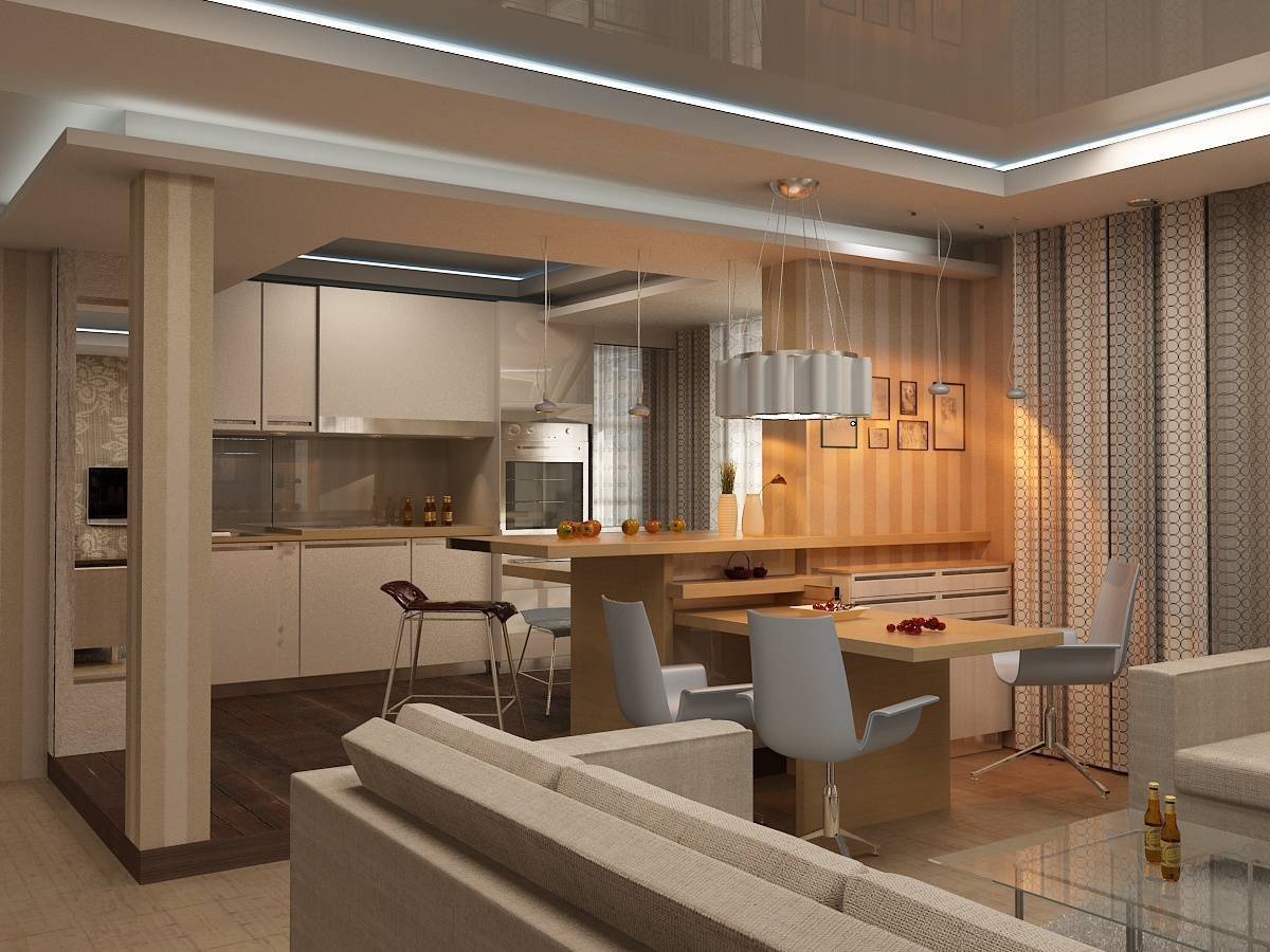 Интерьер кухни, совмещенной с гостиной: плюсы и минусы