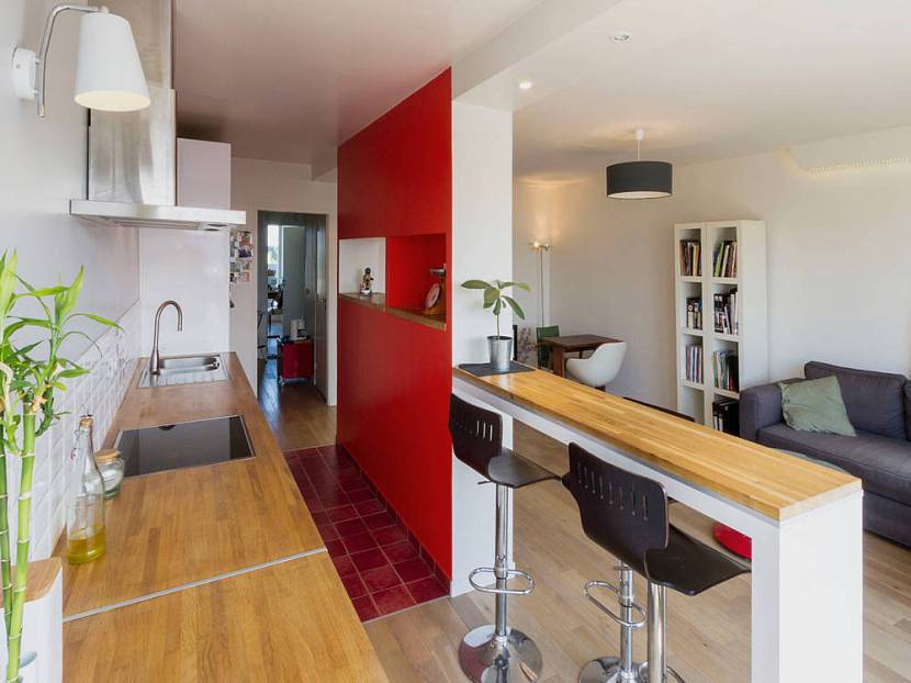 Линейную кухню можно сделать более удобной, если дополнить её полуостровом