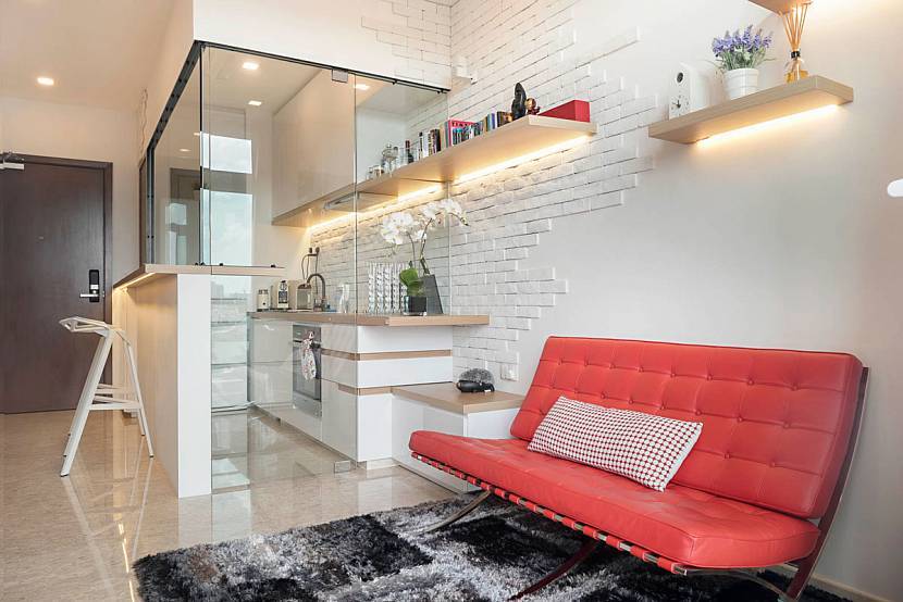 Не стоит нагружать восприятие слишком яркими красками, неуместными инсталляциями или арт-объектами, даже если это квартира в стиле арт-деко или модерн. Мелкие предметы лучше выставить на стеклянных полках или открытых двухсторонних стеллажах, которые рекомендуется использовать как перегородки для зонирования.