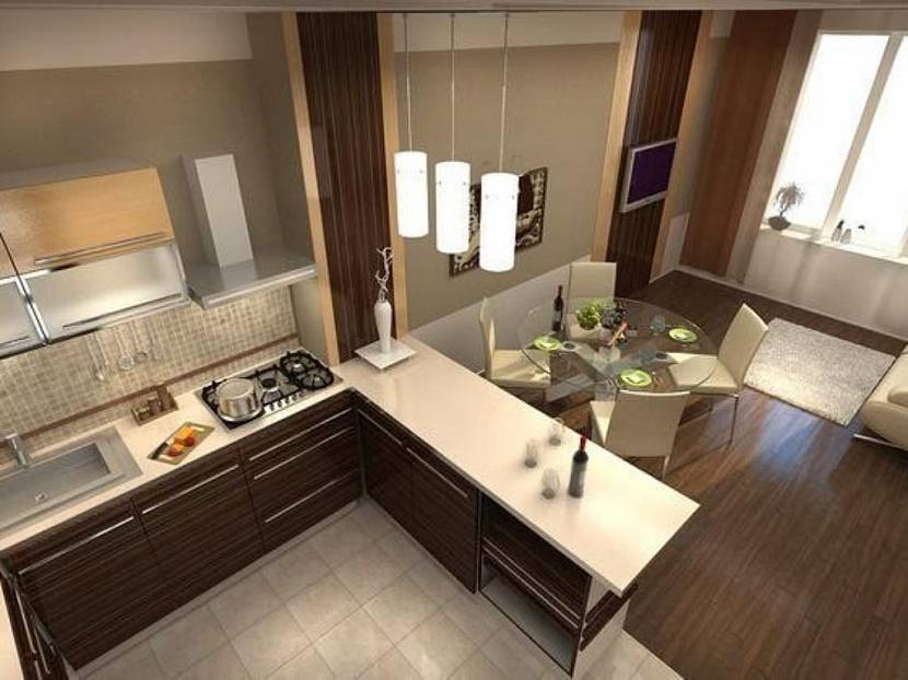 На этапе разработки проекта необходимо учесть, как зона кухни будет отделяться от гостиной