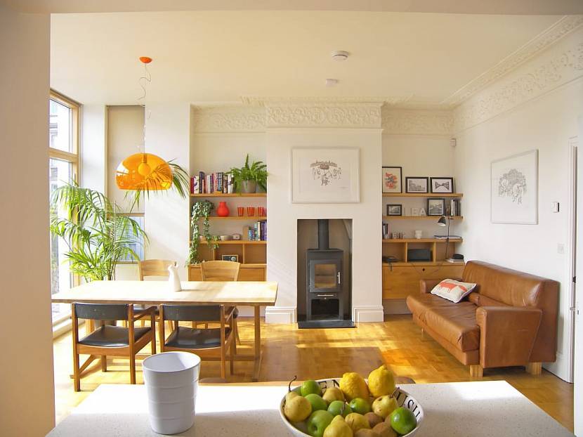 Если все в порядке, то можно приступать к перепланировке. Совсем необязательно оформлять будущее пространство в едином стиле. Будет намного лучше, если комната будет поделена на несколько зон: кухонную и гостевую. Идеально, если одна зона будет плавно переходить в другую.