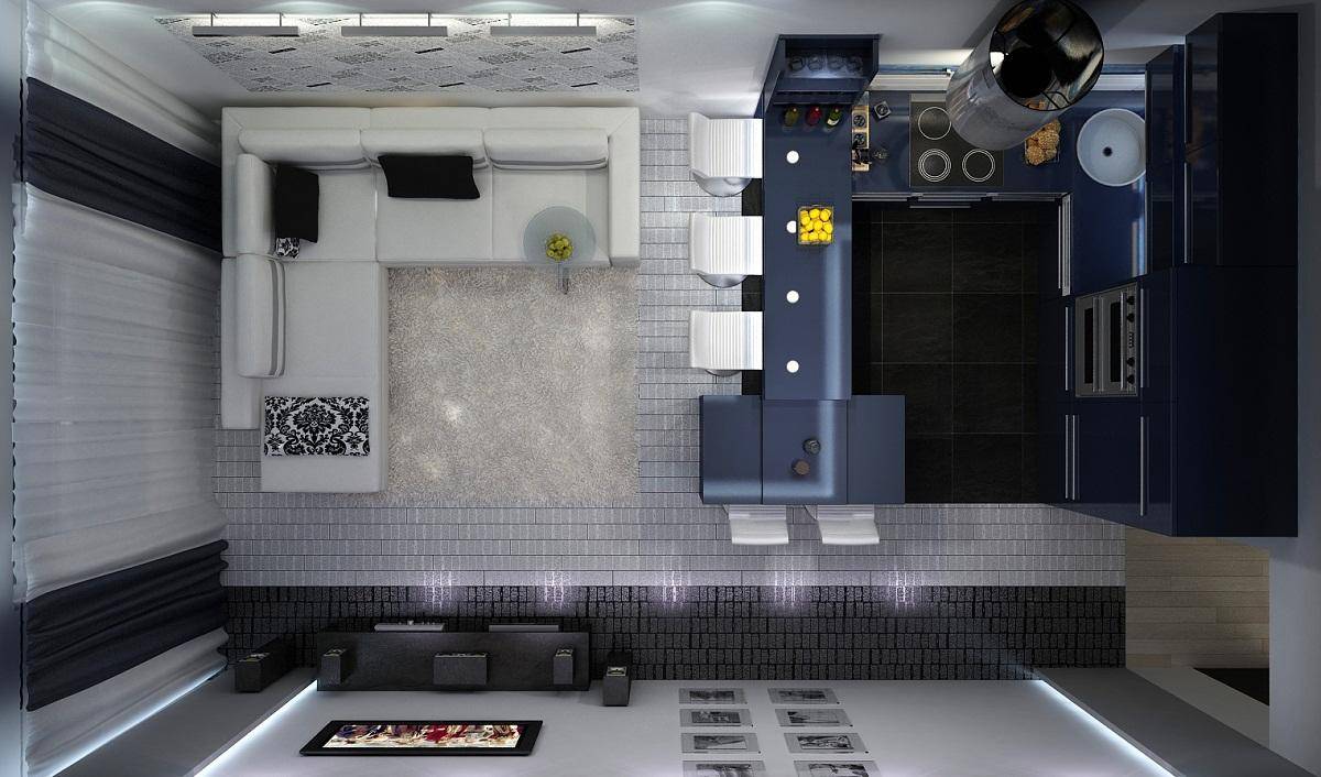 Если все в порядке, то можно приступать к перепланировке. Совсем необязательно оформлять будущее пространство в едином стиле. Будет намного лучше, если комната будет поделена на несколько зон: кухонную и гостевую. Идеально, если одна зона будет плавно переходить в другую.