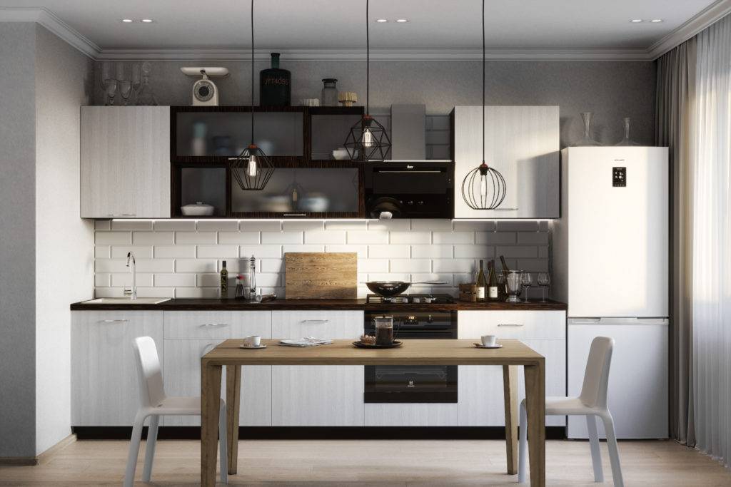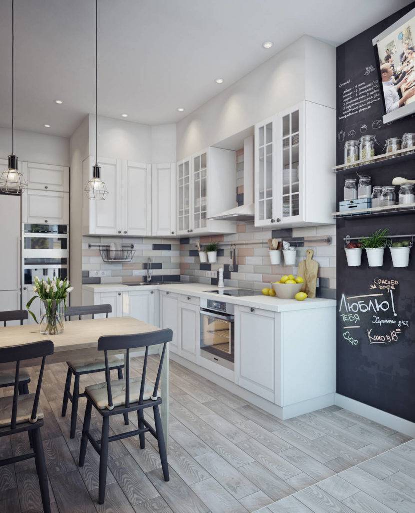 Этот цвет здесь незаменим! А чтобы не сделать кухню похожей на больничную палату из-за обилия данного цвета, добавьте альтернативные тона – серые, зелёные, бежевые, голубые. Интересными акцентами будут жёлтый, графитовый, бирюзовый цвета.