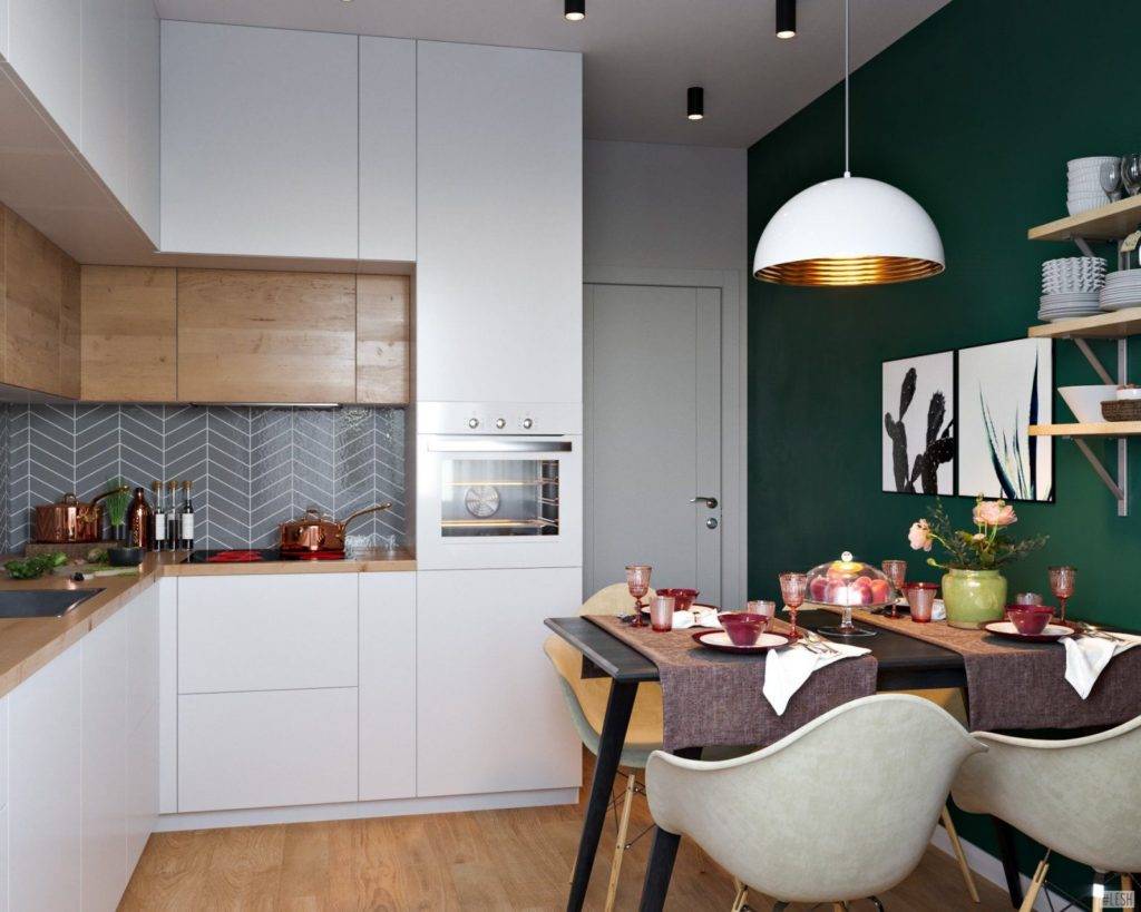 Отделка кухни в Скандинавском стиле в зелёном и голубом