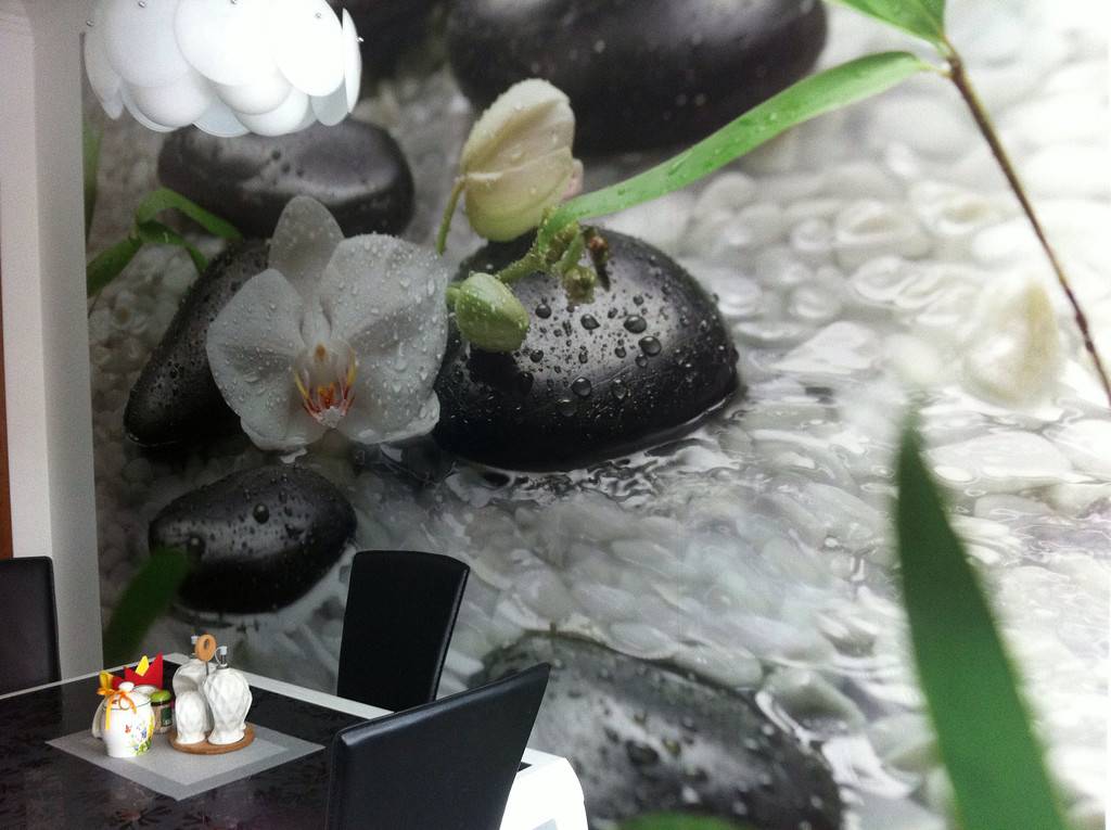 Если вы жаждете чего-то оригинального, то присмотрите натуральные фотообои на свою кухню. Материалы для их создания имеются у фирм-изготовителей. Рисунок наносится на специфическое полотно из стекловолокна. Такую основу не повредит влага и высокая температура. Под отделкой не поселится плесень и грибок. Это единственный материал, обладающий антистатическим эффектом, а это означает, что на его поверхности не будет скапливаться пыль.
