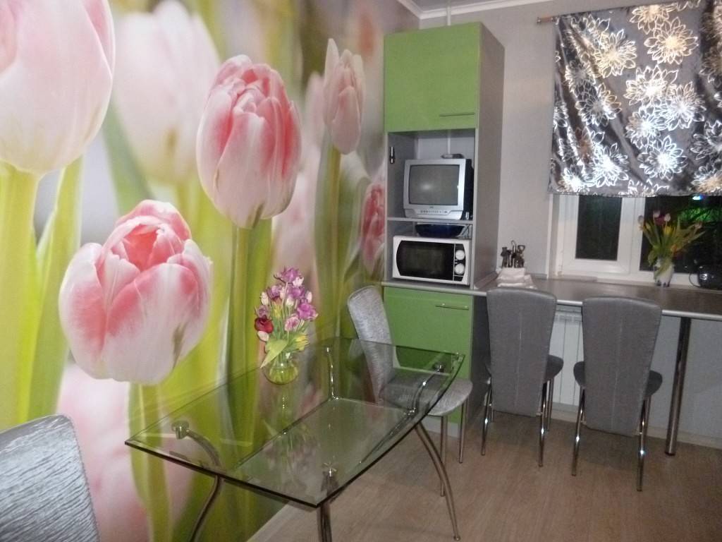 Изображения тюльпанов хорошо сочетаются со стилями прованс, шебби-шик и даже хай-тек. Они подходят для светлых помещений с ограниченным набором мебели.