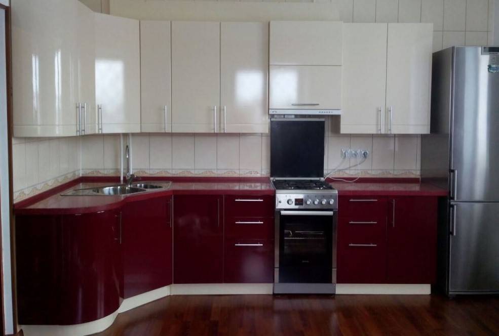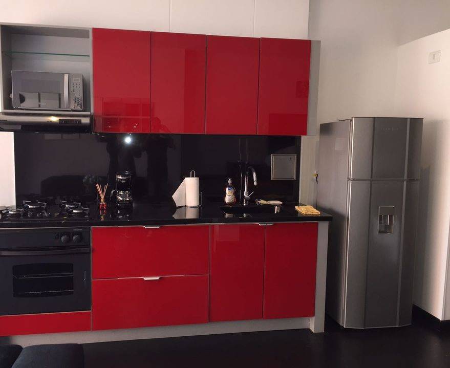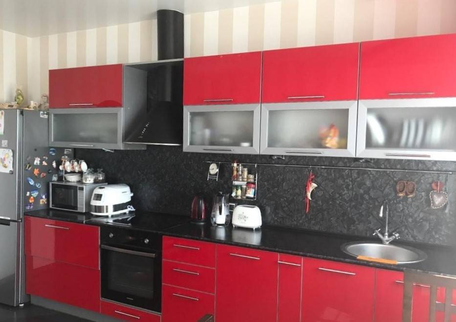 Конечно, стильно будет смотреться темно-красный гарнитур с черным фартуком и на черном полу, но стены должны быть в этом случае светлого оттенка. Черно-красная контрастная кухня больше подходит для кухонь в стиле арт-деко, модерн, лофт, поп-арт.