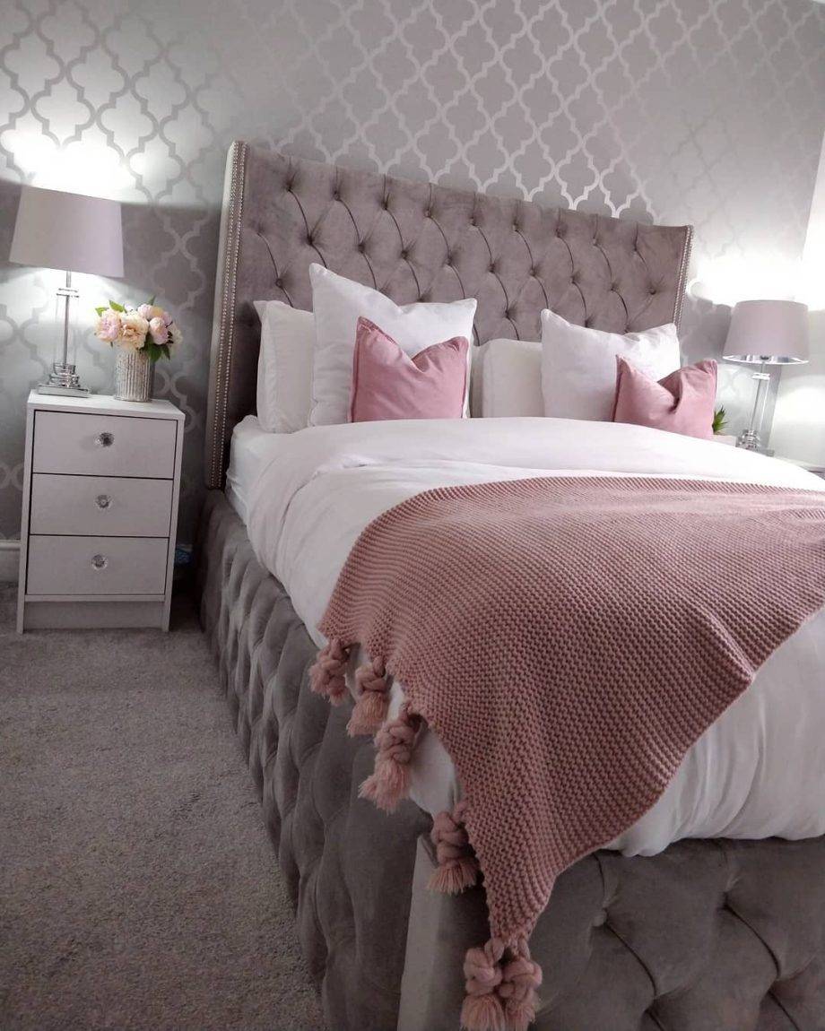 Серо-бежевый цвет в интерьере изысканной спальни.