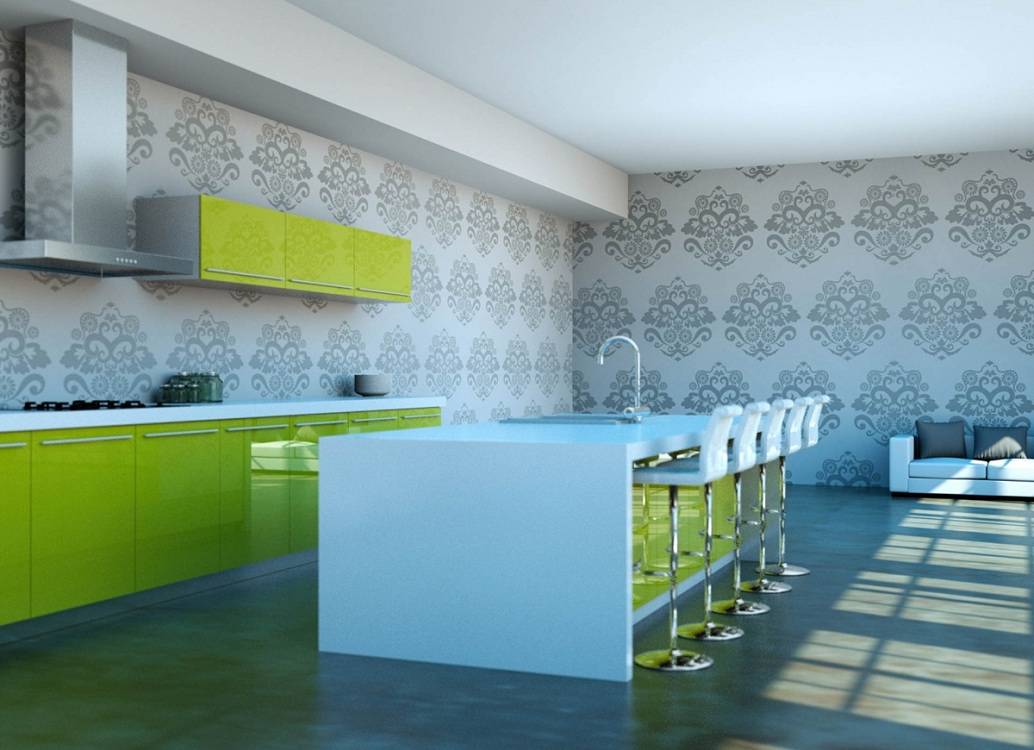 Цвет зеленое яблоко на кухне: достаточно яркий и не надоедает