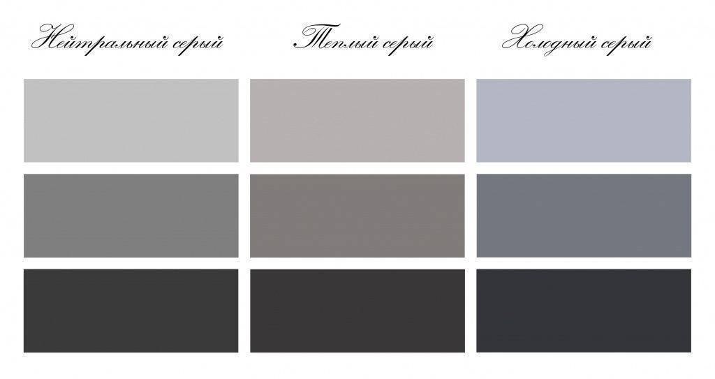 Серый обладает огромным диапазоном насыщенности и имеет множество оттенков – графитовый, платиновый, маренго и др.