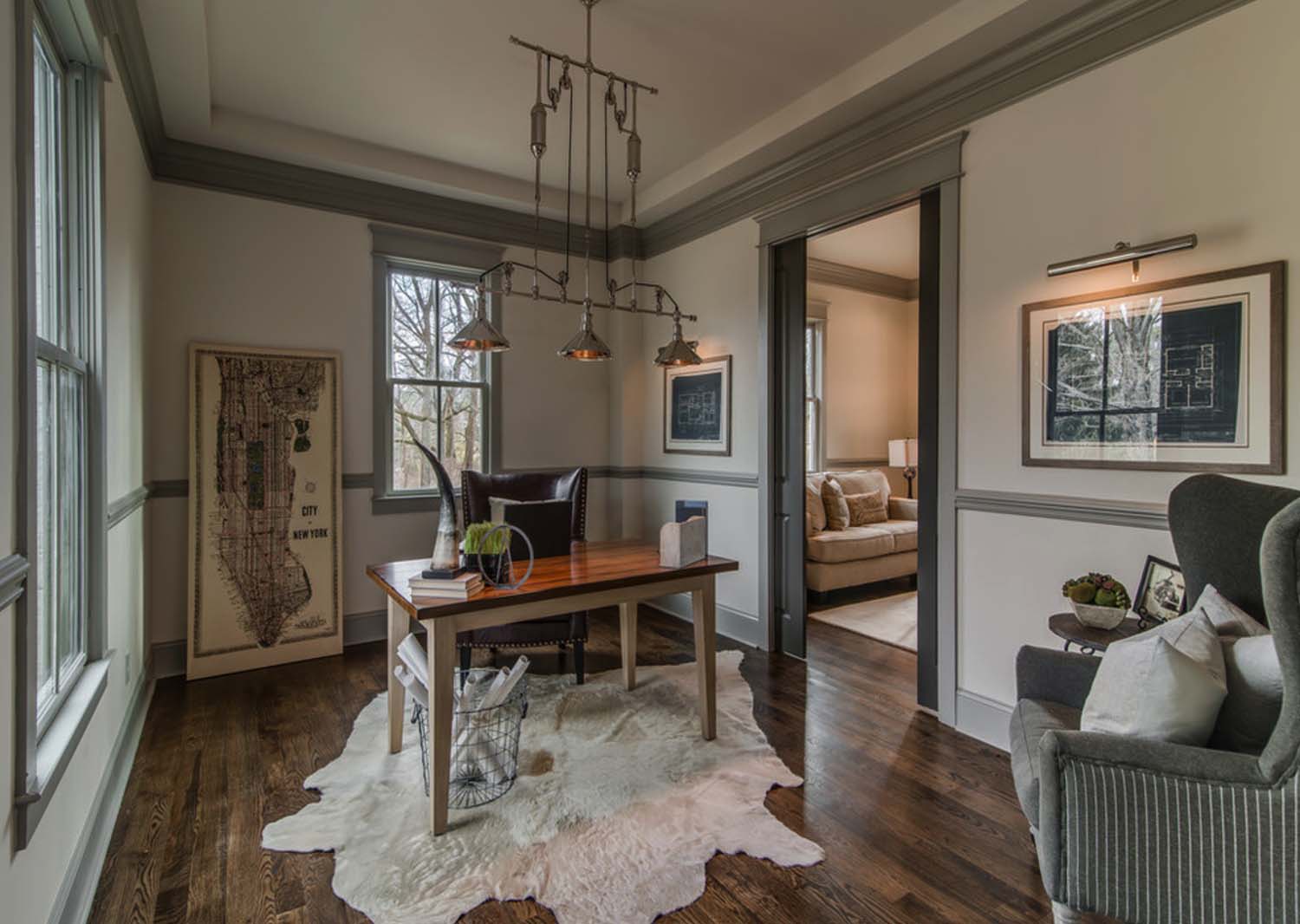 Ещё одно достоинство — высокие окна, через которые проникает больше света. А это значит, что можно сэкономить на электричестве — комната не будет тёмной днём. Кроме того, появляется больше свободы в планировке. Например, рабочий стол размещают не только у окна, но и дальше, до середины комнаты. Освещения хватит.