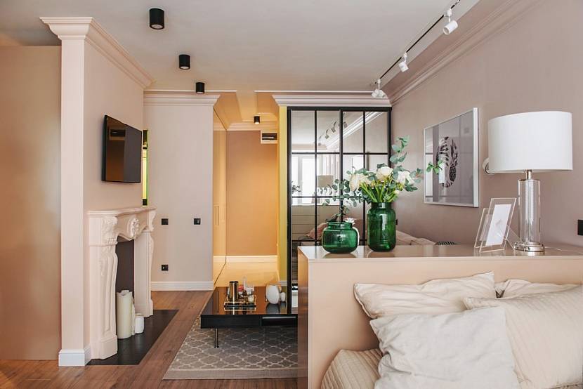 Спальня с гостиной с фальш-каминомИсточник timeszp.com