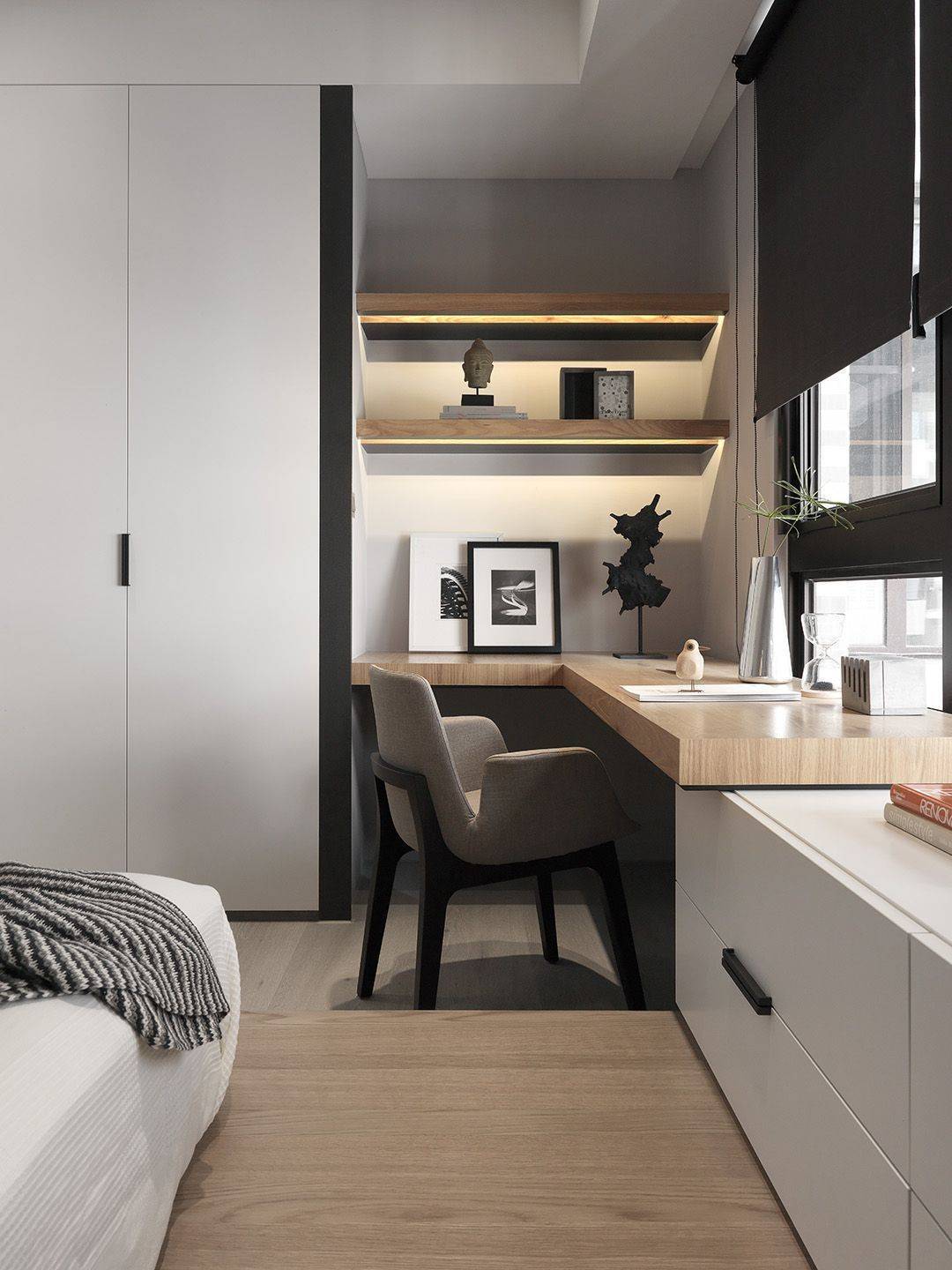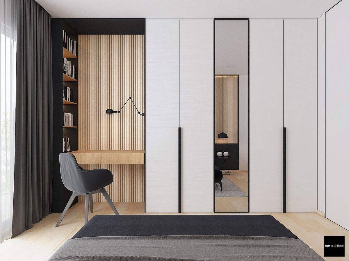Современные гарнитуры для маленьких спален нередко оснащены встроенной кроватью, которую на ночь можно опускать, а на день поднимать. Подобные кровати имеют качественный ортопедический матрас, и пригодны для полноценного сна. В убранном виде они незаметны и позволяют экономить пространство.