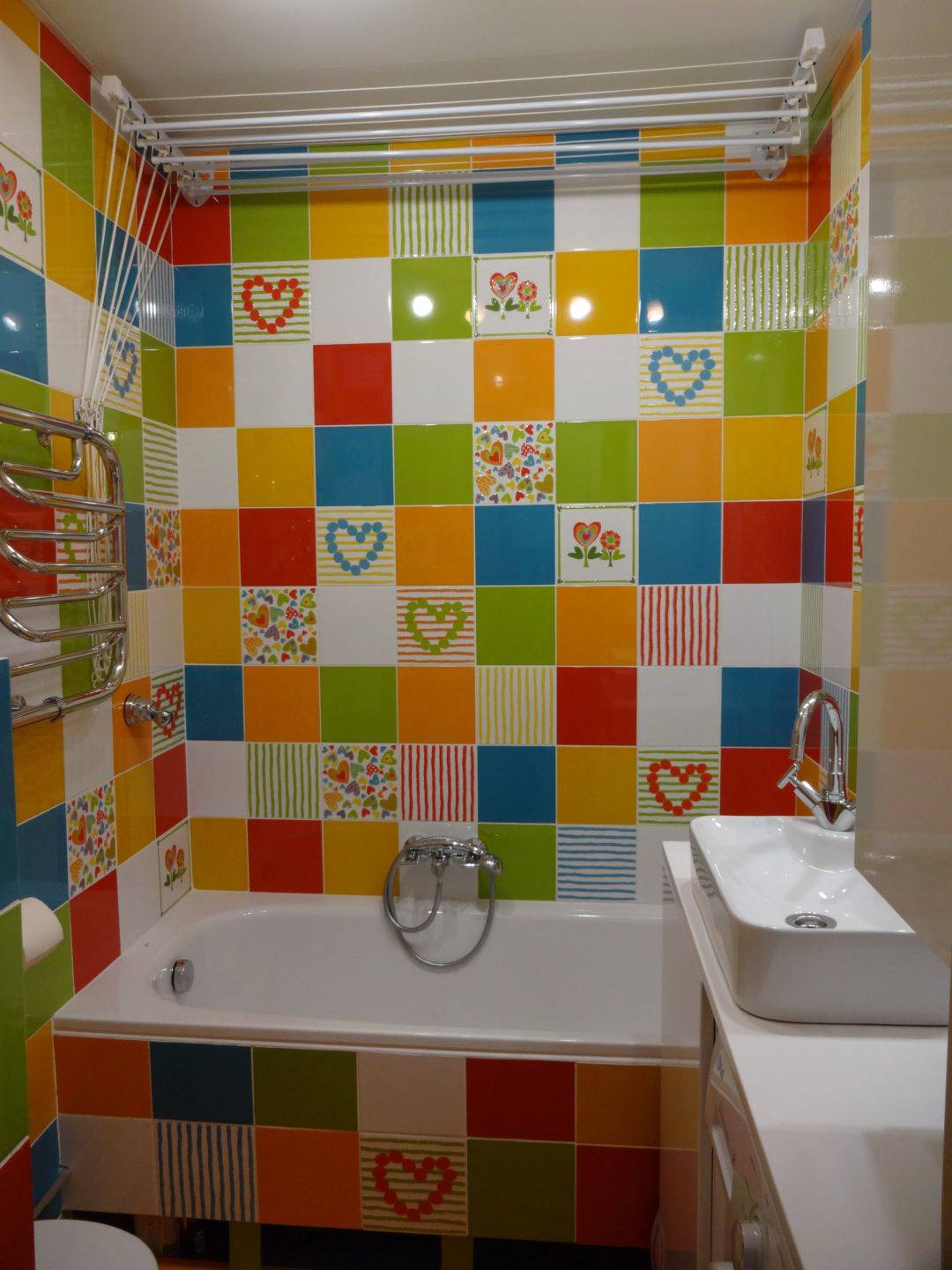 Отделка ванной комнаты плиткой — в этой фразе уже есть ответ. Отделка, а не декор. Плитка — отделочный материал. На маленькой площади любые попытки использовать плитку яркую, цветную, с узорами и рисунками, сюжетами и т.д. обречены на провал. Будет просто колхозная каша из цветов и текстур, которая будет контрастировать с белой сантехникой.