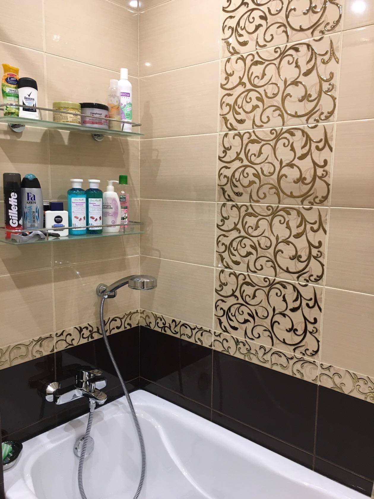 Если ванная 5-6 метров, то на стенах можно использовать 2 вида плитки. Но не делить стену горизонтально или вертикально, а использовать по принципу 1 плоскость — 1 плитка. В крайнем случае зонировать с привязкой к сантехнике и мебели или с какой-то идеей.