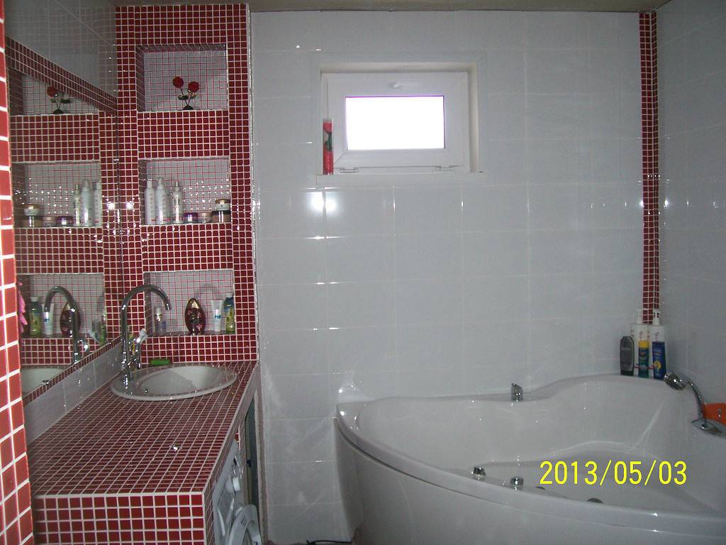 Потолок — матовый белый натяжной, ничего лучше по цена/качество нет. Пол — керамогранит с резным краем(чтобы уменьшить размер швов между плиткой). Стены — плитка, но тут начинаются ошибки.