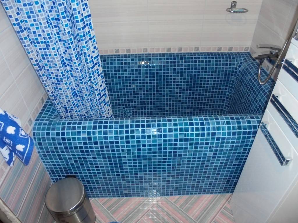 Мозаику можно применять на стенах комнаты, на самой ванной, на раковине.Ее можно подобрать в форме квадратиков, прямоугольников, ромбиков, шестиугольников.