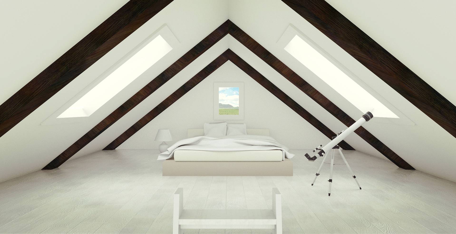 Такое помещение идеально создано для спальни, небольшой, уютной, теплой, с окнами на звездное небо.