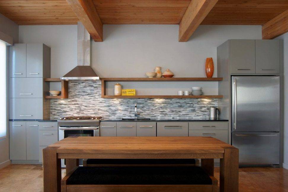 Возможность разместить габаритную мебель. Из-за расширения пространства у вас появится возможность вместить на кухне стильный буфет или холодильник побольше.