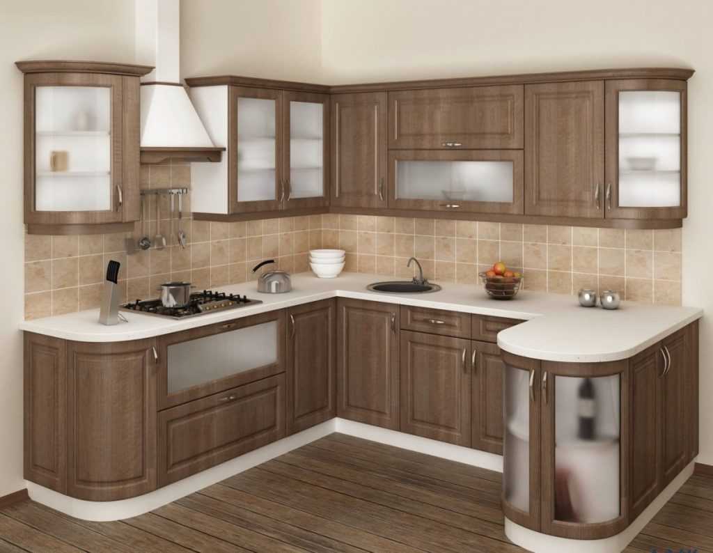 - Угловая. Позволяет отделить одну часть комнаты от другой. Удобно, если площадь кухни невелика или же в ней располагается ещё и обеденный стол.
