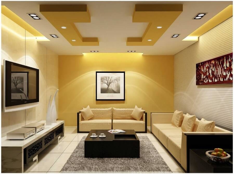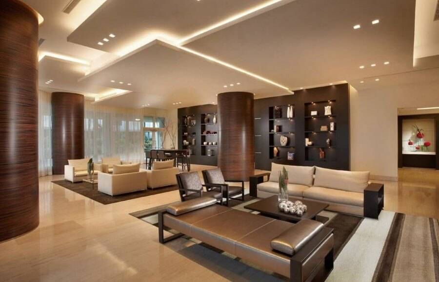 Дизайн потолка из гипсокартона для большой гостиной