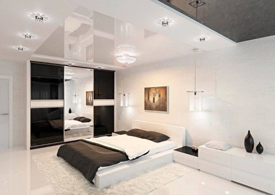 В последнее время специалисты предлагают оформление комнат в разных стилях и вариациях. Например, с художественными вставками, фотоколлажами, двухцветными спаянными полотнами. Окончательный выбор будет зависеть от габаритов комнаты и выделенного бюджета.