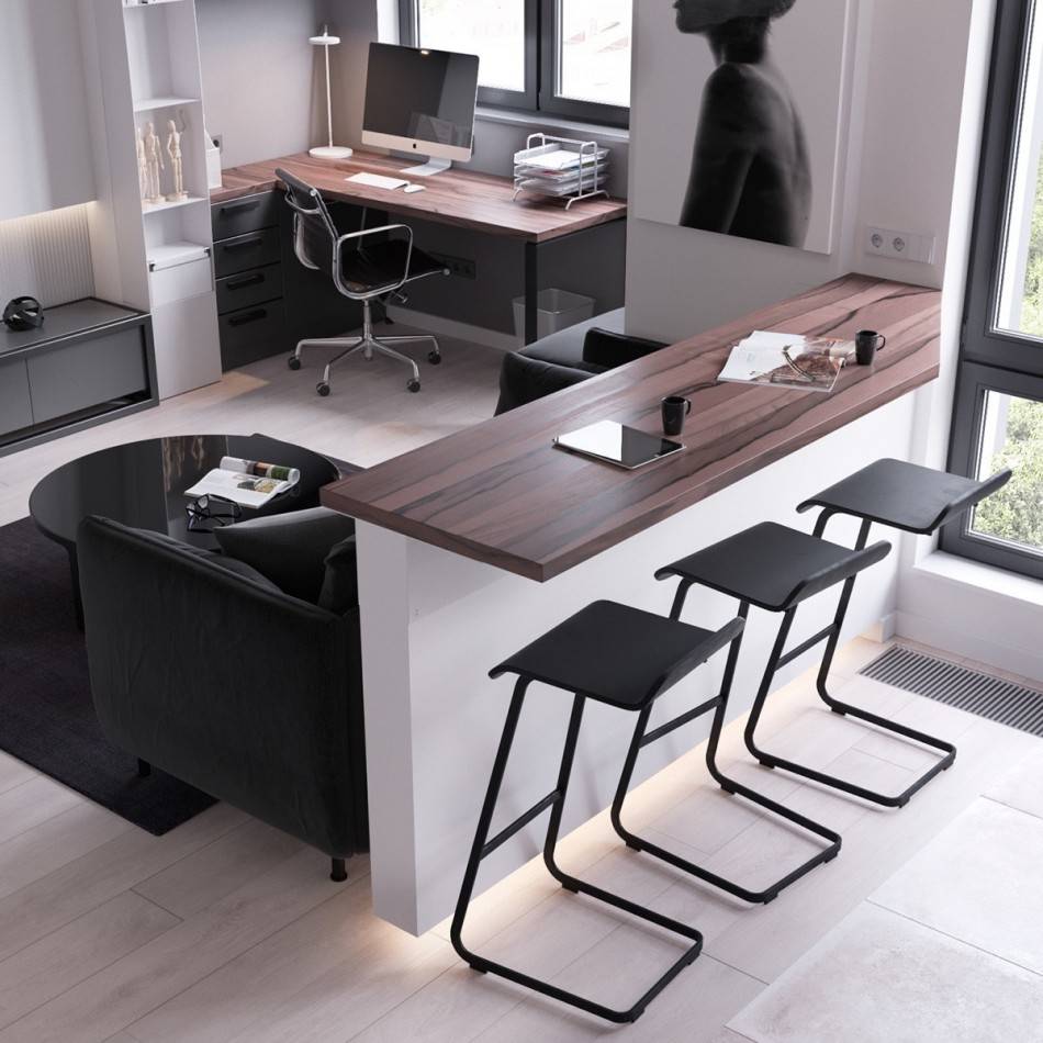Дерево и белый-это еще один вид дизайна, который отлично смотрится в небольшом жилом пространстве и позволяет ему легко вписываться в кухню и столовую рядом с ней. Убедитесь, что вы вводите элементы, которые дают характер интерьеру однокомнатной квартиры.