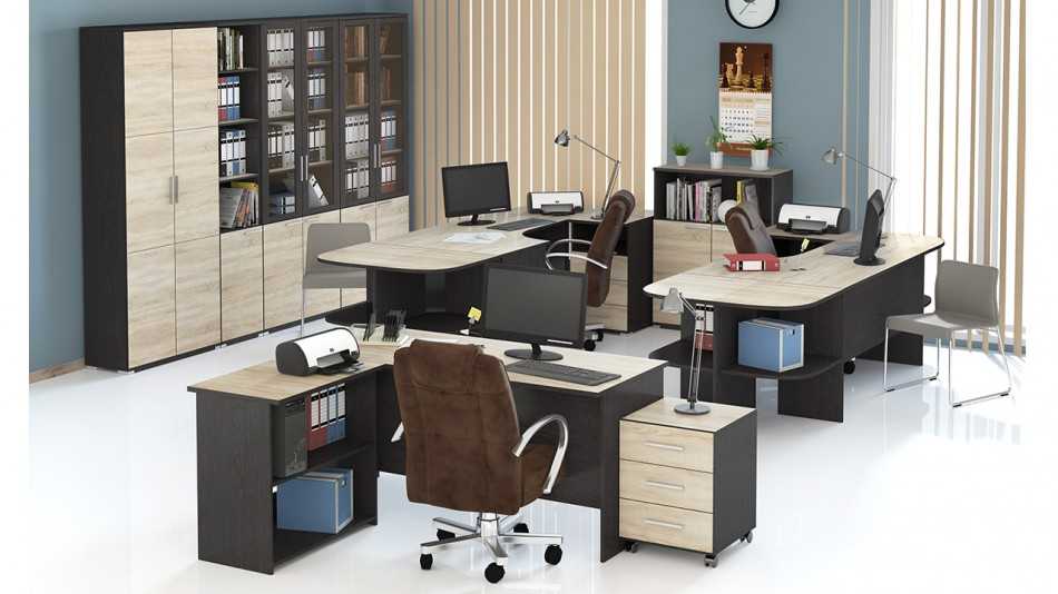 Разделите комнату на зоны. Рабочую зону от общей территории. Мебель для хранения документов, и другие шкафы лучше размещать недалеко от входа, чтобы при необходимости что-то срочно взять и выйти из комнаты не нужно было проходить через всех работников или мешать им.