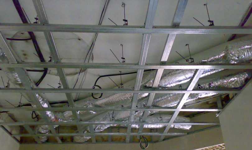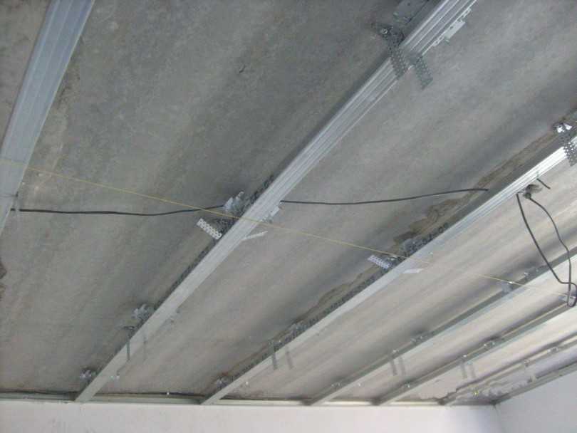 На центральные профильные рейки закрепляем вторичные профили. Их закрепляют там, где будут стыковаться гипсокартонные листы. В итоге получается металлический каркас.