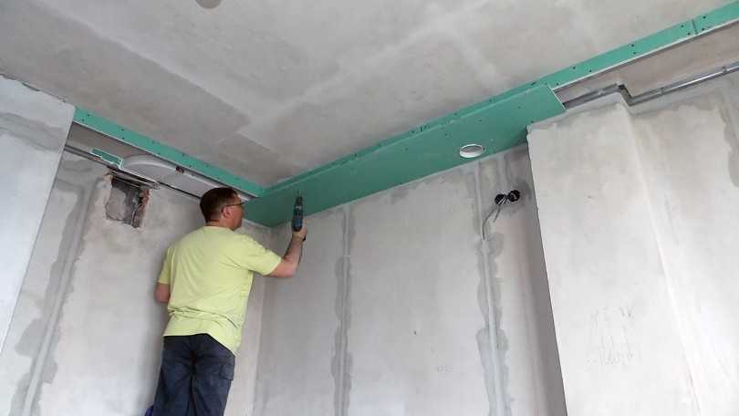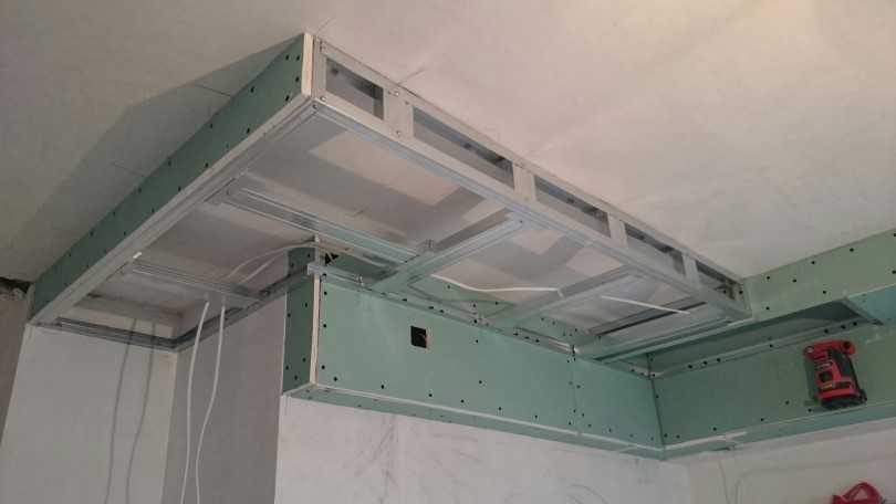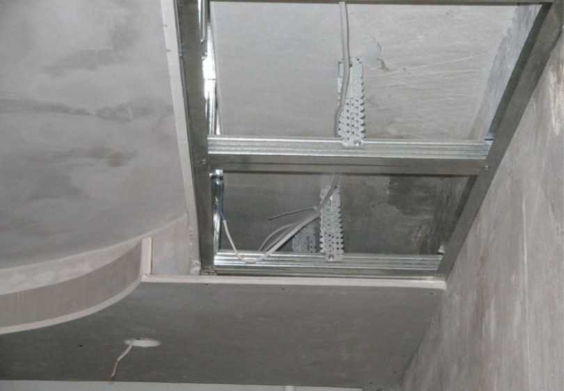 Вначале предстоит определиться насколько нужно отступить для желаемого потолка от основного. По меньшим меркам потребуется 10 см, т.к. встроенному светильнику потребуется — 9 см.