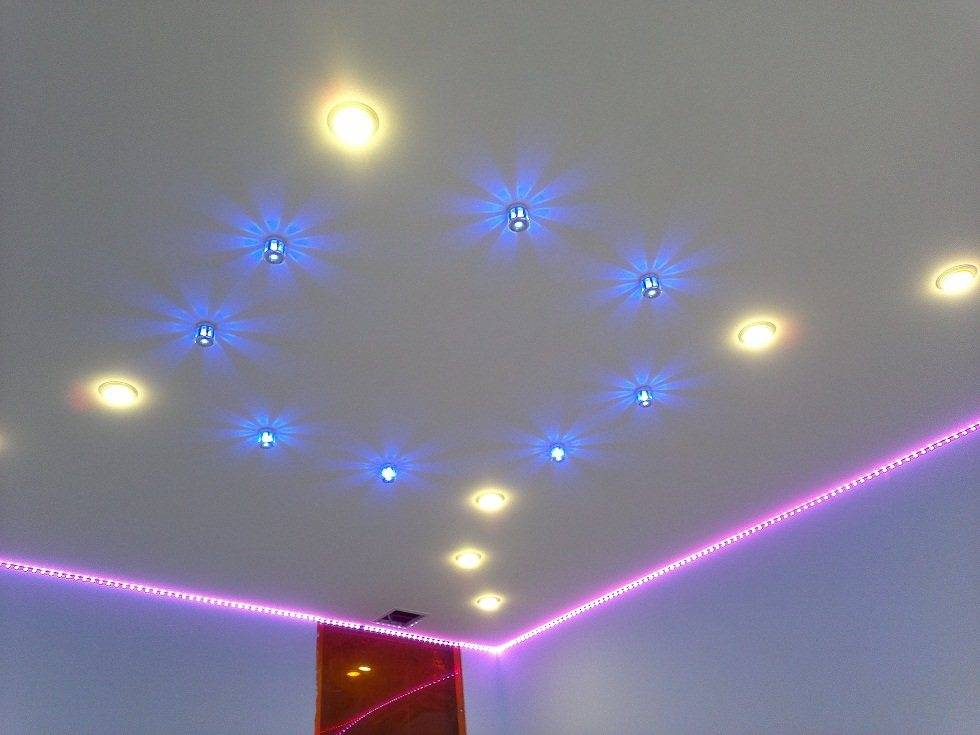 Современные стили разрешают практически любое сочетание светильников: диоды, спит-системы и так далее.