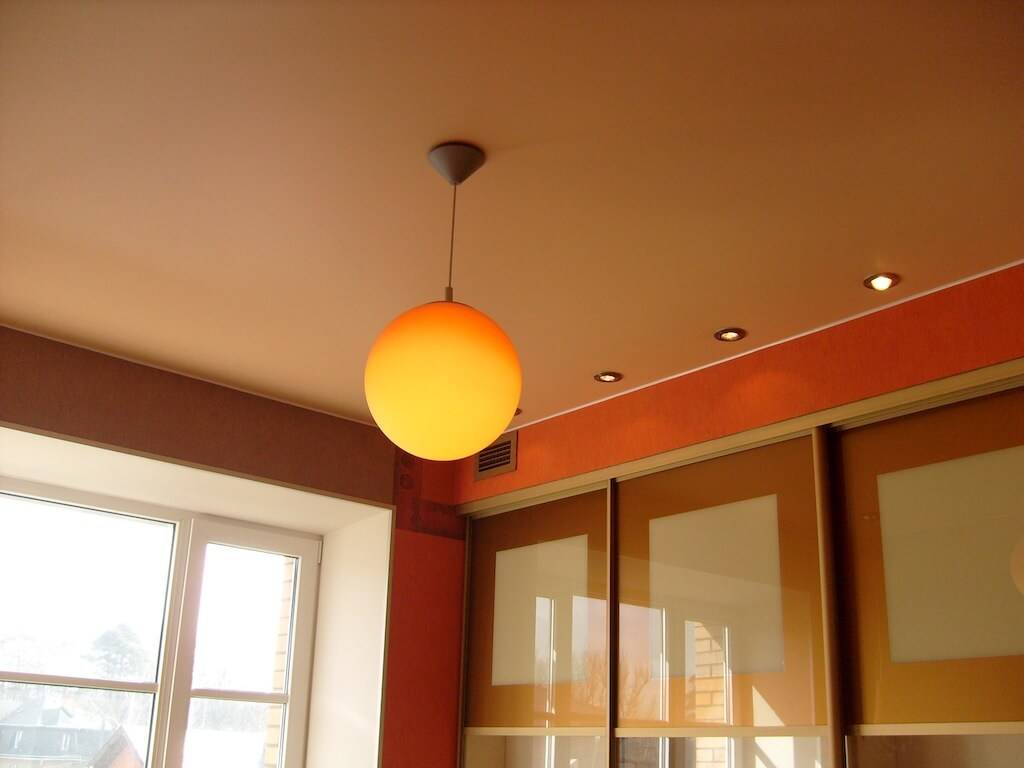 При выборе ламп, которые значительно нагреваются при работе, нужно выдерживать расстояние от них до поверхности полотна (для ламп накаливания 10 см, люминесцентных – 6 см) или брать модели небольшой мощности (лампы накаливания не более 40 – 45 Вт, галогенные до 35 Вт).