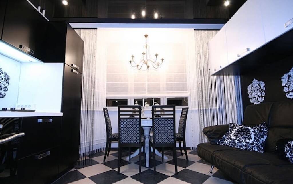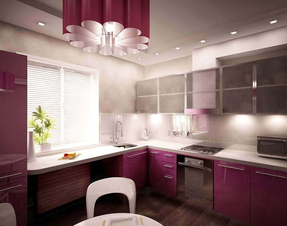 | Есть возможность спрятать коммуникации и проводку. Так, например, при установке натяжного потолка можно оснастить кухню точечными светильниками и повесить люстру прямо над столом. | Наличие швов на виниловых потолках (при большой площади кухни). Во-первых, швы, хоть и малозаметны (их толщина составляет менее 1 мм), но могут быть видны при пристальном рассмотрении. Во-вторых, швы являются слабым местом виниловых потолков. При некачественной сварке или из-за слишком сильного натяжения при установке полотно может порваться именно по шву (такое происходит не часто). |