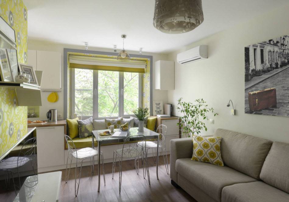 - В одном помещении очень легко совместить несколько функциональных зон. Для этого нужно избавиться от лишнего гарнитура.
