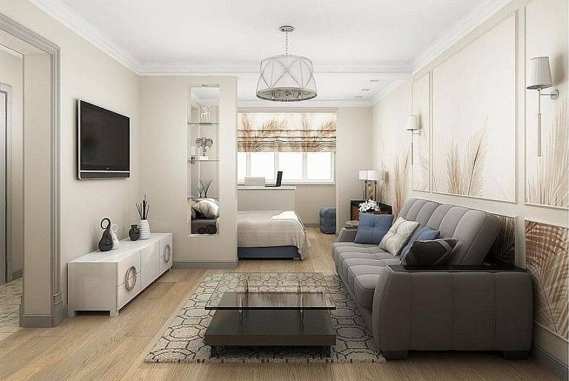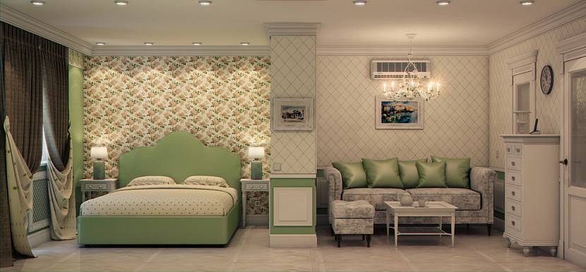 Для некоторых направлений, например, классического, важно роскошное, помпезное оформление, которое сложно воссоздать на небольшой площади. Интерьер объединенной в одном помещении спальни и гостиной должен быть функциональным.