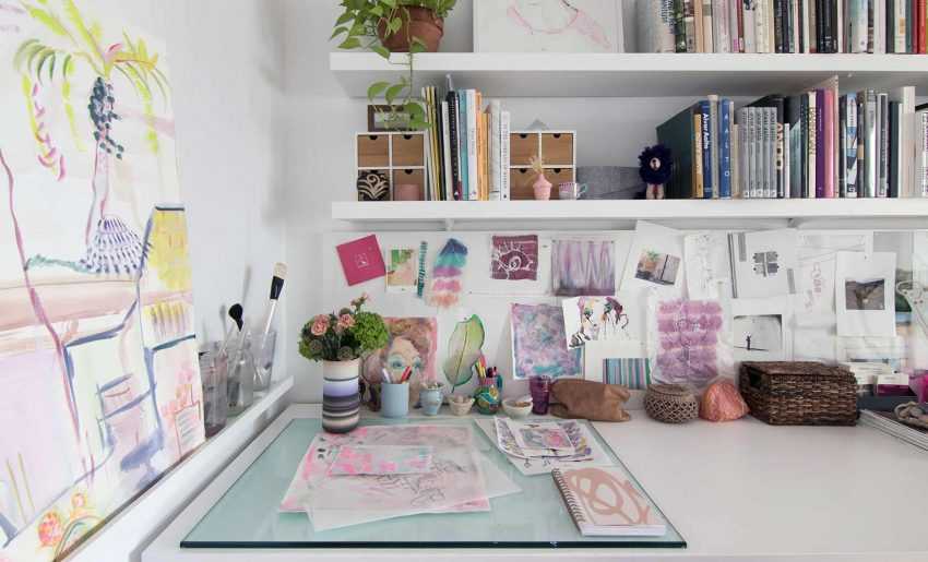 Иногда приходится в небольшой квартире совмещать гостиную и рабочий кабинет. Для небольшой прямоугольной гостиной, совмещенной с рабочим кабинетом, оптимальным станет размещение рабочего места возле окна. Это позволит максимально использовать естественное освещение. Для размещения справочной литературы и домашней библиотеки целесообразно использовать двухсторонние открытые стеллажи. Они позволяют отграничить пространство, не создавая при этом впечатления загроможденности. Помимо книг, на стеллажах можно разместить предметы декора: статуэтки или сувениры. Красиво смотрятся и комнатные растения.