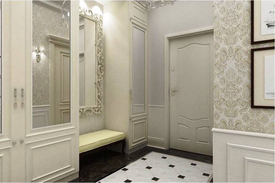 Вот это поворот: Небольшая прихожая с лепниной, багетами, мебелью и отделкой под классику