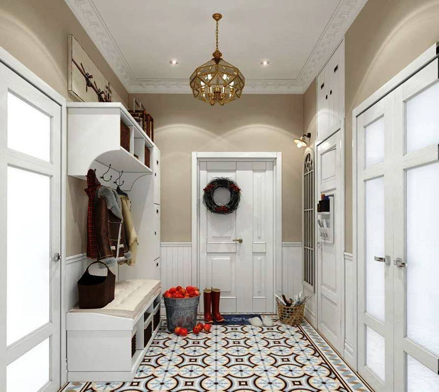 - Уменьшение потребности в дополнительном освещении. В коридоре обычно нет оконных проемов, поэтому он может выглядеть темным и мрачным при недостатке осветительных приборов. Оттенки белого, бежевого и слоновой кости способны визуально усилить освещение, в результате можно значительно сэкономить на электричестве.