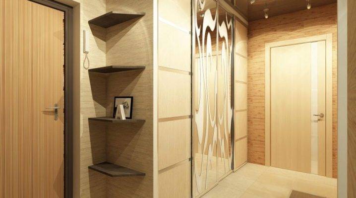 Для хрущёвок с длинным коридором прекрасно подойдут узкие шкафы-купе. Лучше, если такая конструкция будет иметь встроенное в дверное полотно длинное зеркало. Это создаст зеркальный коридор и наполнит прихожую светом, сделав её более просторной. Такая конструкция не требует места для распаха двери и поэтому является очень экономичной по площади.