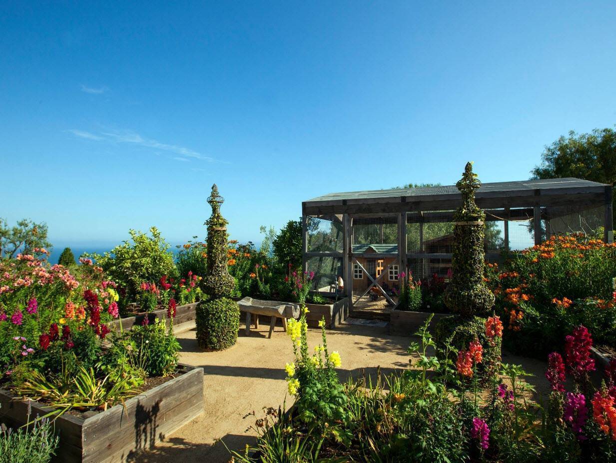 Для ландшафтного оформления применяются каменистые дорожки, всевозможные цветники, красивые ограждения и необычные цветы