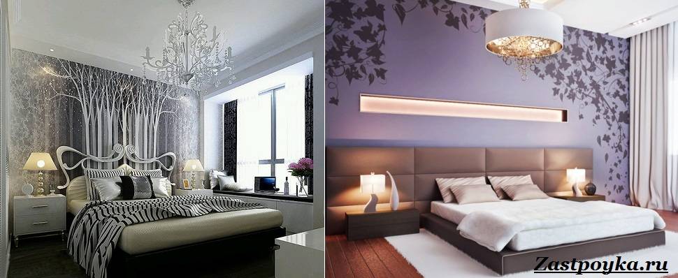 Вместе с выбором стиля и цветовой гаммы стоит запланировать отделку спальни. Если потолки высокие, то представляется прекрасная возможность использовать подвесные потолки и интересные варианты подсветки.
